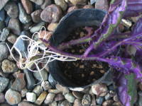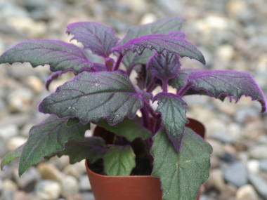挿し芽や水挿しで増やす事ができます。4節ぐらいの挿し穂を用意して、一番下の葉を取ってそこが用土に埋まるように挿すか水につけます。時期は5月から8月頃まで行えます。根が出て芽を吹き始めたら定植し、摘心してわき芽を出させるとボリュームのある株になります。その他は挿し芽のページをご覧下さい。![]() ギヌラの水挿し |