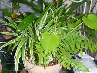 ミニ観葉植物として低額で売られている事があり、また株分けでもよく増えるので、寄せ植えの素材として利用してもよいです。夏の日差しで葉が焼けやすいので、同じ明るい日陰で育つものと一緒に植えるのがよいです。寄せ植えは根が詰まりやすいので、翌年の5月から6月頃にまた植え替えた方がよいです。![]() |