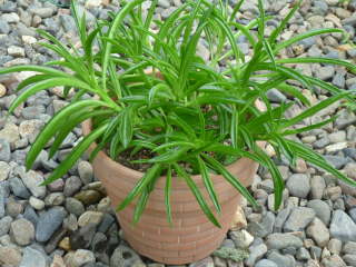 伸び過ぎてしまったら適度な長さに切り戻すとよいです。秋に切るとその後の生育期間が短くあまり伸びないので、夏までに終わらせた方が良いです。もし冬の寒さで葉が減って姿が乱れたら、春に株元から2、3節ぐらい残して短く切り戻すと、夏頃には茎の数も増えて葉が茂ってきます。もし鉢植えの株元が寂しい場合は、切り戻した先をスペースに直接挿し木すると、発根して根付きスペースが埋まることもよくあります。![]() 冬を超えて姿が乱れてしまった |