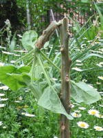 あまり樹高が高くなり過ぎたら切り戻してコンパクトに出来ます。時期は新芽を吹く3月から4月頃がよいと思います。切った下の葉があった所付近から、しばらくすると新芽が伸びてきます。写真は誤って落として先を折ってしまったものですが、しばらくすると新芽が数本伸びてきました。![]() 4月下旬 |
