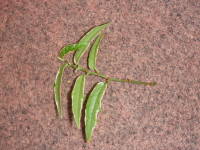 挿し木で容易に増やすことができます。時期は5月から6月頃が理想的ですが、気温の高い時期ならつでも行えます。長さ6cmぐらいの挿し穂を用意して、下の方の葉を2枚ほど取って、取った節が用土に埋まるように挿します。その他は挿し木のページを参考にしてください。![]() 挿し穂 |