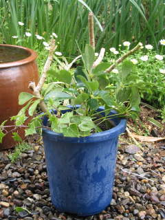 生育が早いので樹形が大きくなりやすいです。もし樹形が大きくなり過ぎた場合は、枝を好みの長さに切り戻すとよいです。時期は4月中旬から6月頃、切った付近から新芽が伸びて2ヵ月ぐらすると葉が茂ってきます。写真は冬に霜の当たらない戸外に置いたものが、氷点下の寒さで葉が落ちて枝先が枯れたものを切り戻しました。寒さで部分的に枝が枯れても、根が生きていればまた葉が茂ってきます。切った先は挿し木にして増やす事もできます。![]() 冬の戸外で枝先が枯れた |