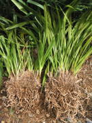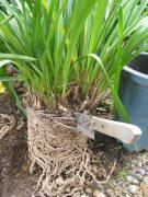 株分け植え替え時大きくなり過ぎた株は株分けをして増やす事ができます。株分けは3バルブ以上で一株とするように株分けをします。時期は4月の早い時期に行います。方法はバルブをできるだけ避けて包丁などで丁寧に切り分けます。切り分けた際、葉の出ていない枯れたバルブは取り除きます。枯れていないバルブは養分になるので取り除きません。株分け後は1週間ぐらい半日陰で管理します。下は根詰まりで花芽が出ないので株分けしたものです。2つに分けようと思ったのですが、思ったより大きいかったので4つに分けて2つは人にあげました。