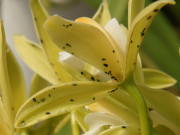 花茎切り花持ちがよく、いつまでも花茎をつけておくと、株の栄養が花に奪われ、来年の花の開花に影響してくる事があります。花茎を切るタイミングは、 12月から2月頃に開花しているものは7割ぐらい枯れてから、3月から4月頃に開花しているものは3割ぐらい枯れてから切花に、その後の5月頃に開花しているものは8分咲きぐらいで切花に利用します。切り花は5度ぐらいの低温で管理すれば1ヶ月ぐらい持ちます。病害虫 花にアブラムシが発生することがあります。スミチオンなどを散布して駆除します。 |