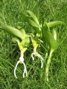支柱立て花が咲くと重みで茎が下がってくるので支柱で支えるとよいです。支柱は蘭用の細いタイプがよいです。古い茎一度花を咲かせた所から再び花を咲かせる事はありませんが、花後の古い茎も春の新芽が出る時期の養分や水分になりますので、全て切り取らないよう元気な茎を3本ぐらいは残しておきます。花が咲き終わって2、3年もすると色があせて細くなるので、そのような役をしなくなった茎は切り取ります。温室栽培ノビル系は寒さに強いので、別に温室がなくても春に花を咲かせる事ができます。冬に開花させたい場合は温室で加温+加湿する事で花を咲かせる事が可能になります。温室については温室のページをご覧ください。 |