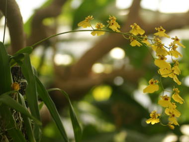 オンシジュームは中南米のあちこちに生息して、原種だけでも400種類以上が分布しています。全ての品種が樹木に着生して育っている着生蘭です。洋ランの中では育てやすく、温室も必要せずに育てる事ができます。花期は種類によってまちまちで、夏から秋頃に咲くもの、冬から春に咲くもの、不定期咲きの種類もあるようです。洋蘭の中では少し地味に見えますが、小さく黄色や茶色の花を沢山咲かすとても魅力的なランです。開花してから40日から50日ぐらい楽しむ事ができ、切り花にしても花もちがよいので、切り花も流通しています。