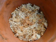 ![]() 隙間に水苔を入れる途中 |